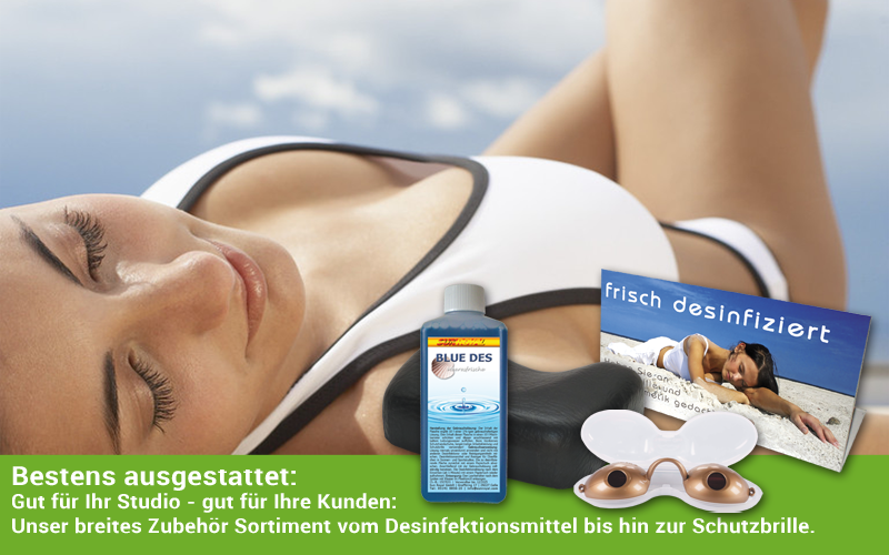 Bei uns finden Sie sämtliche Produkte und Leistungen, die Sie für einen erfolgreichen und professionellen Solariumbetrieb benötigen. Und wenn Fragen auftauchen? Unsere Kundenbetreuung steht Ihnen mit Fachwissen und Engagement gern zur Seite – persönlich, schnell und zuverlässig. |